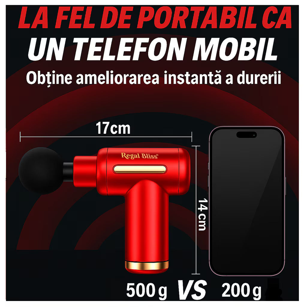 Aparatul de masaj Regal Bliss® (tip pistol) oferă masaj profund pentru spate,