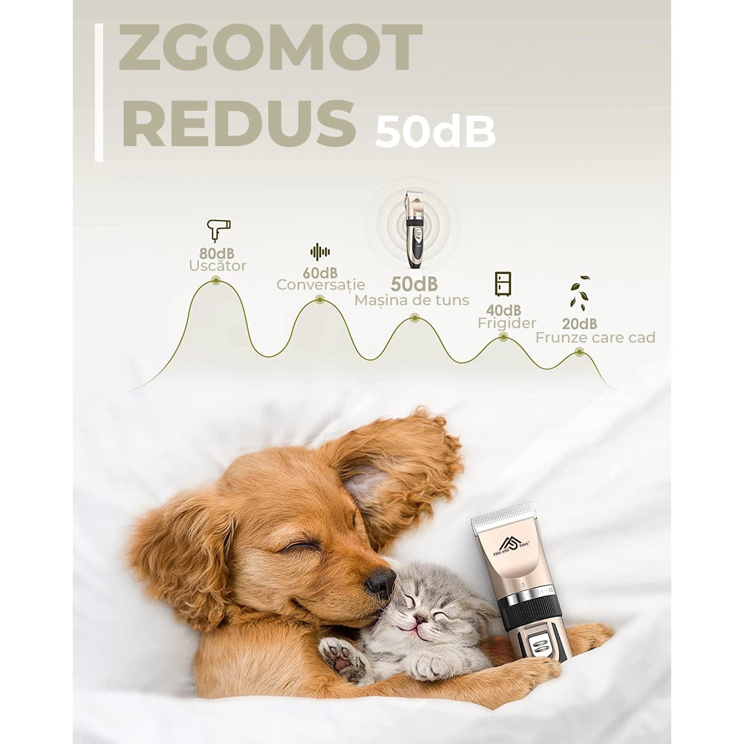 - Nivel zgomot aprox. 60 dB (mai confortabil pentru animale sensibile)