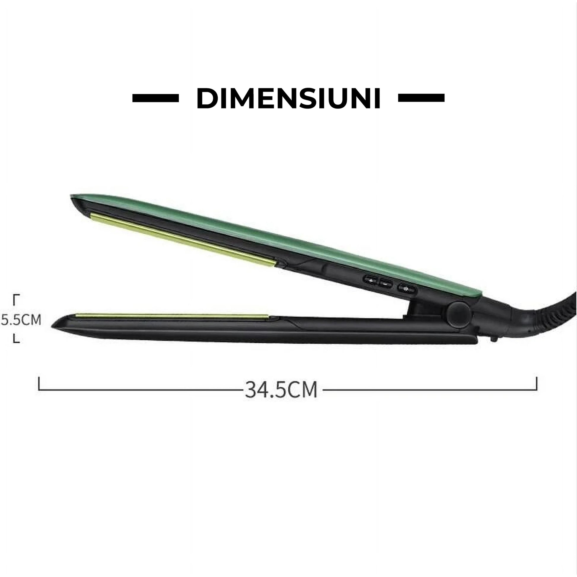 Cablu rotativ 360° pentru mișcare liberă, design compact și plăci de 4.5 × 3 cm pentru control bun pe fiecare șuviță.